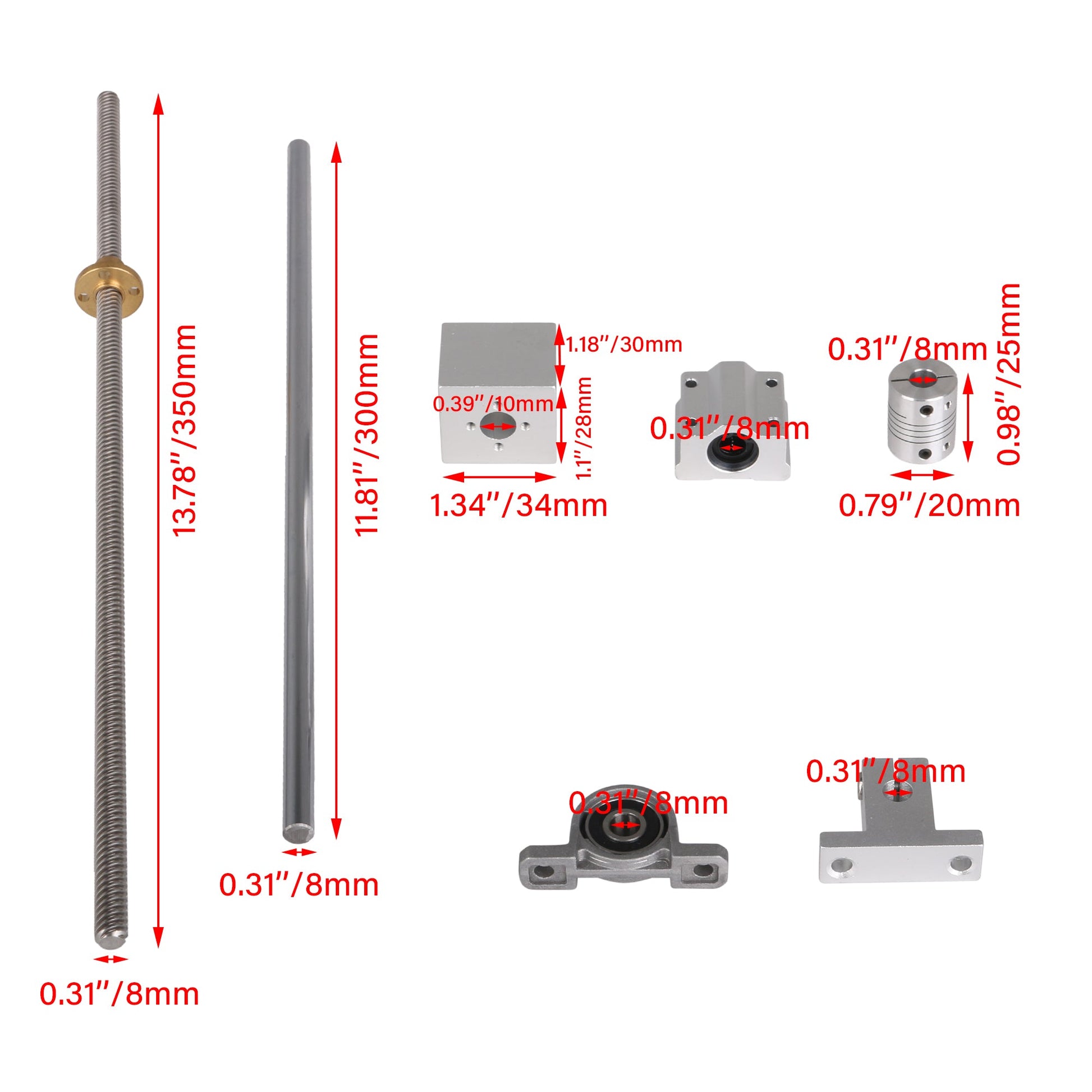 Lead screw: 350x8mm/13.78x0.31inch (LxW)